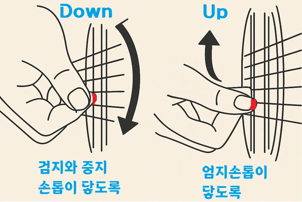 안녕하세요, 여러분! 기타 좀 쳐본 분들은 아실 거예요. 기타는 결국 리듬 싸움이라는 것을! 그 리듬의 심장을 뛰게 하는 가장 기본적인 동작이 바로 스트로크입니다. 그중에서도 다운 스트로크와 업 스트로크는 기타 실력을 빠르게 키우는 데 핵심 중의 핵심이죠.오늘은 이 두 가지 스트로크를 완벽하게 내 것으로 만들고, 연주의 리듬감을 폭발시키는 비법을 알려드릴게요. 자, 준비되셨나요? 1. 다운 스트로크 vs. 업 스트로크: 리듬의 심장을 뛰게 하라!기타를 연주할 때 오른팔을 흔들어 현을 치는 동작을 스트로크라고 합니다. 이 스트로크는 크게 두 가지로 나뉘며, 각각 음악에서 매우 중요한 역할을 해요.다운 스트로크 (Down Stroke): 피크로 기타 현을 아래로 쓸어내리며 치는 동작입니다. 보통 곡의 강한 ..